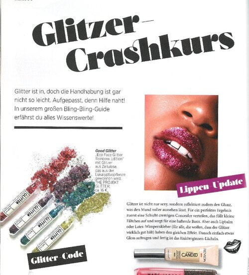 Our planet-friendly glitter has gone global! Find us in Vogue, Elle, Glamour, and more.